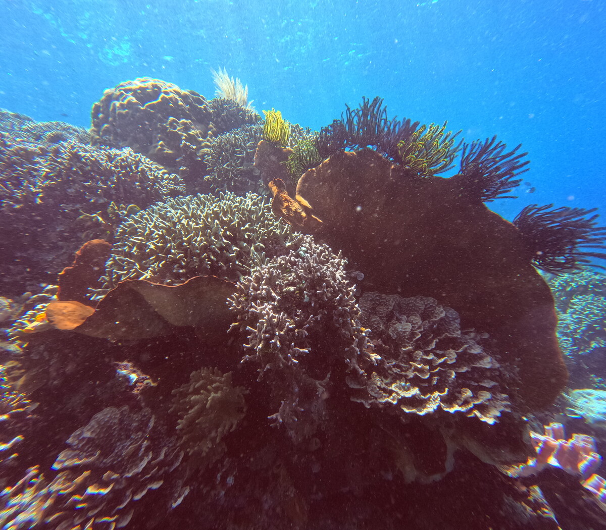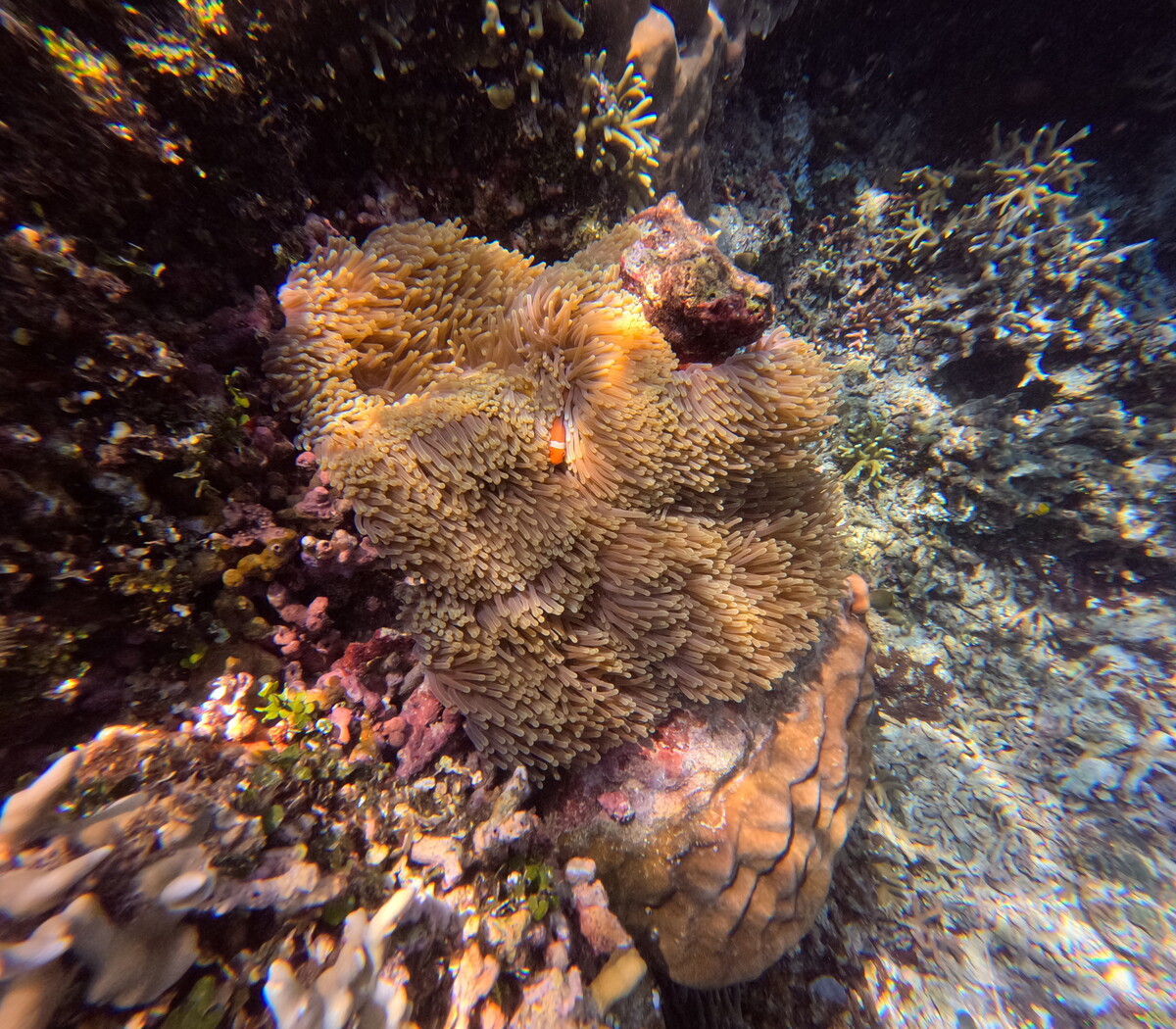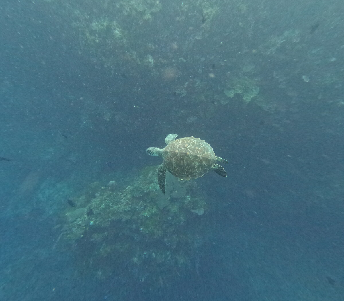 Ansonsten entdeckten wir die Gegend eher schnorchelnd. Bunaken ist rundum von einem traumhaften Korallenriff umzogen und auch direkt vom Two Fish Resort konnten wir einfach losschnorcheln, wobei die Fülle der Schildkröten eher auf der anderen Seite der Insel zu finden war - wie auch der Adlerrochen, den ich noch staundend erblickte, wie er unter mir langzog während die anderen gerade wieder aufs Boot kletterten.
