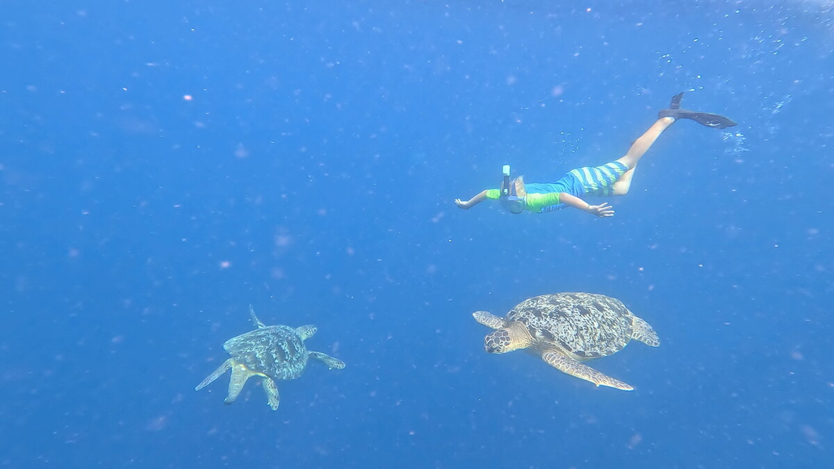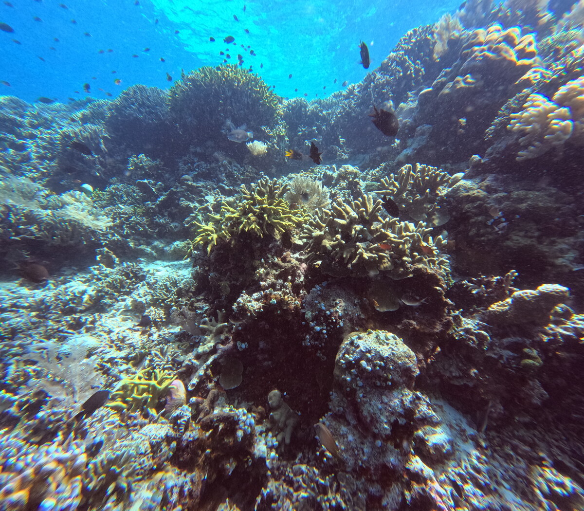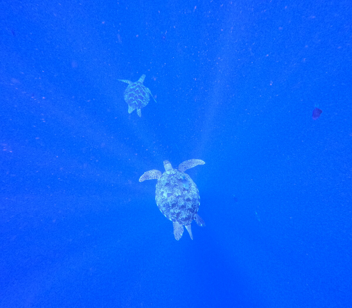 Ansonsten entdeckten wir die Gegend eher schnorchelnd. Bunaken ist rundum von einem traumhaften Korallenriff umzogen und auch direkt vom Two Fish Resort konnten wir einfach losschnorcheln, wobei die Fülle der Schildkröten eher auf der anderen Seite der Insel zu finden war - wie auch der Adlerrochen, den ich noch staundend erblickte, wie er unter mir langzog während die anderen gerade wieder aufs Boot kletterten.
