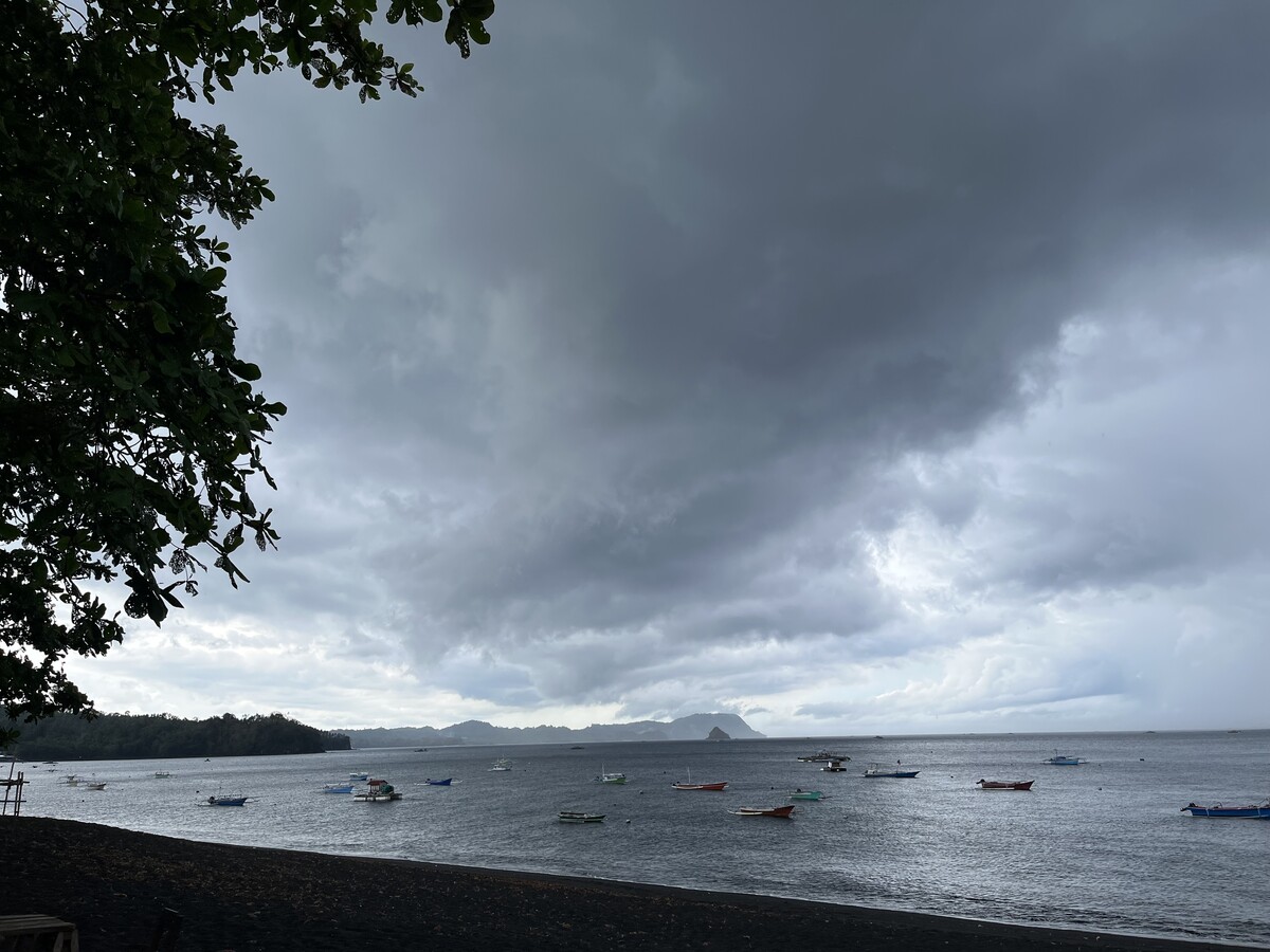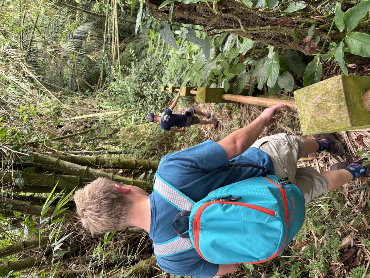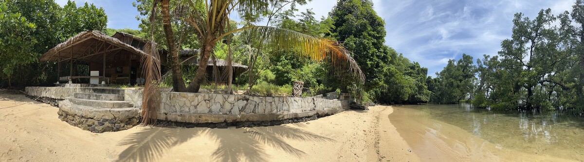 Die Corona-Pandemie hatte einschneidende Wirkung auf viele touristische Angebote Indonesiens und auch Bunaken blieb nicht verschont. Etliche eigentlich wundschöne Anlagen blieben sich selbst und der Rückeroberung durch den Regenwald überlassen, wie zum Beispiel dieses Resort, an welchem wir beim Spaziergang entlang des Strandes vorbei kamen. Traurig aber auch spannend da quasi entdeckend mit Jelle reinzuschauen.