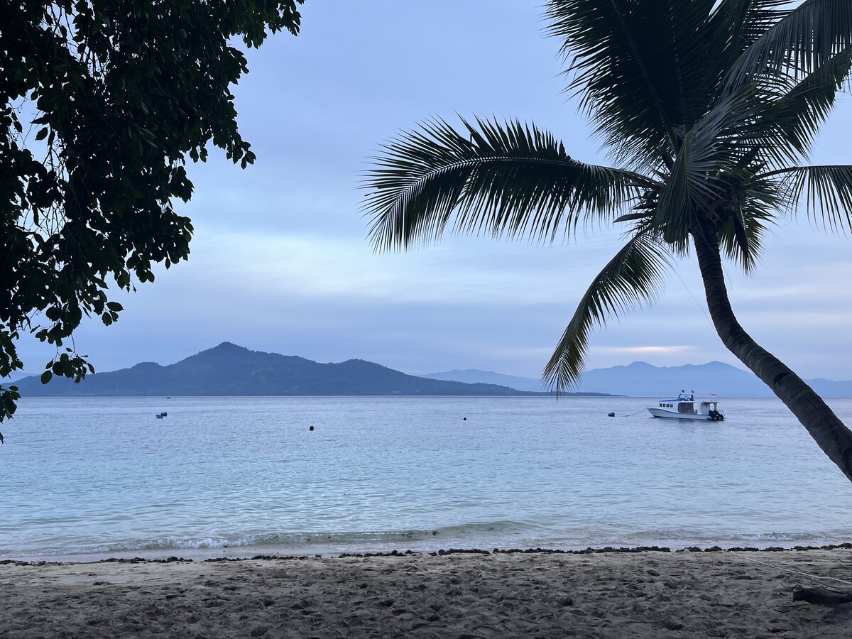 Das Two Fish Resort liegt an der Ostküste der Insel, vom Dorf aus hatten wir aber einen schönen Blick auf den Sonnenuntergang.