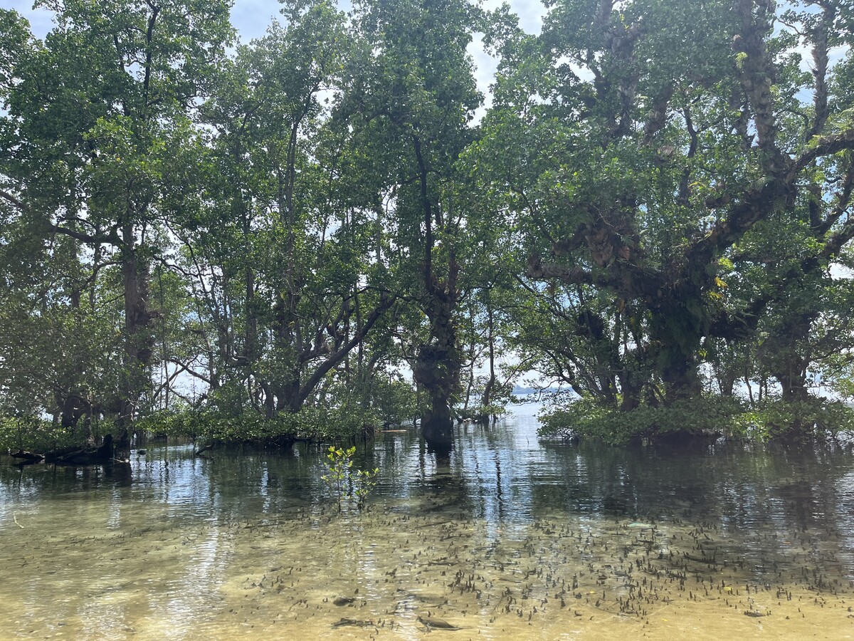 Abseits des Wegs dominiert Dschungel die Insel und zur Küste hin Mangroven.
